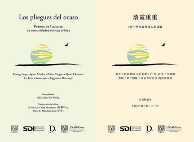 En “Los pliegues del ocaso”, editado en México por la UNAM mediante la selección del poeta Jidi Majia y Shi Yining, director de la Revista de Literatura de Minorías étnicas de China, destacan autoras como Lu Juan (en yi), Aynur Maulet (en kazajo), Huang Fang (en zhuang), Baima Yangjin, (en tibetano), Quan Chunmei (en coreano), Sarantuyaa (en mongol) y Uygurnisa Rozasayit (en uigur). La traducción al espa?ol estuvo a cargo de los mexicanos Mónica Ching y Pablo Mendoza.