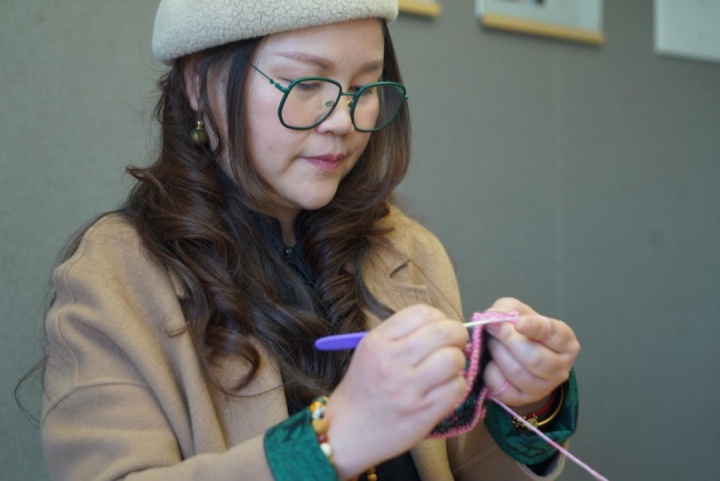 Hu Chunfang hace ganchillo. (Foto: Zhejiang Daily Press Group)