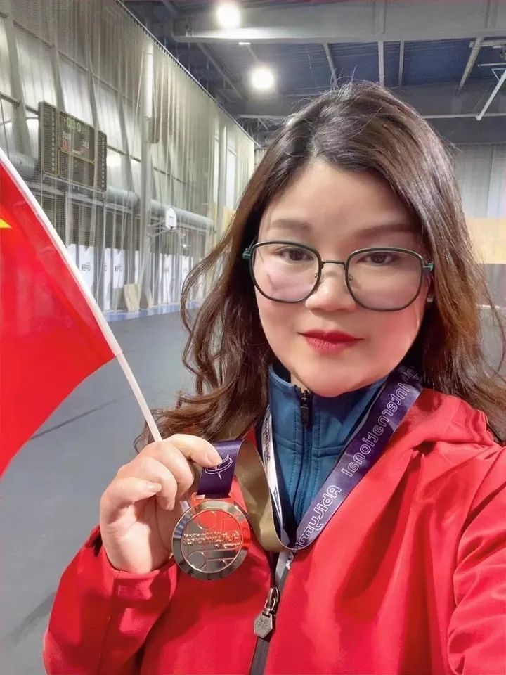 Hu Chunfang muestra su medalla de oro. (Foto: Zhejiang Daily Press Group)