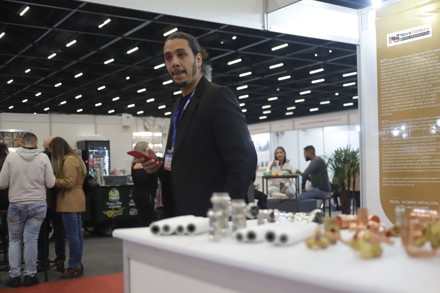 Un expositor asiste a la feria comercial "China Homelife Brazil 2022", en Sao Paulo, Brasil, el 15 de junio de 2022. (Xinhua/Rahel Patrasso)