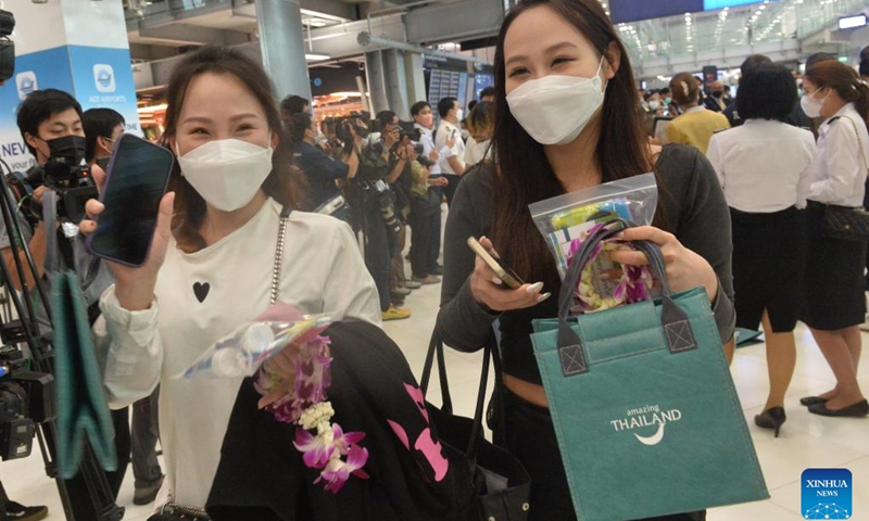 Pasajeros chinos llegan al aeropuerto de Suvarnabhumi en Samut Prakan, Tailandia, el 9 de enero de 2022. Foto de archivo: Xinhua