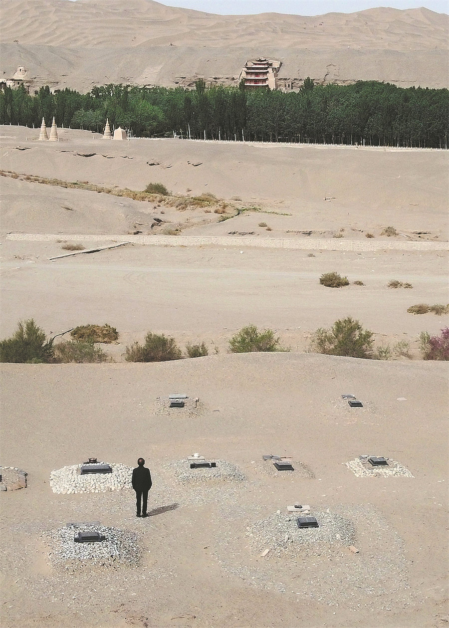 Fan visita el cementerio público donde han sido enterrados los últimos conservadores de la Academia Dunhuang, conmemorando a sus predecesores, que parecen todavía proteger las Cuevas. (Foto: Zou Hong/ China Daily)