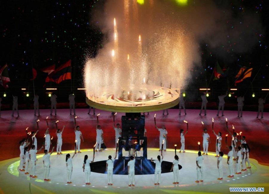 El pebetero es encendido durante la ceremonia de apertura de la 31a edición de verano de los Juegos Mundiales Universitarios de la FISU, en Chengdu, en la provincia de Sichuan, en el suroeste de China, el 28 de julio de 2023. (Xinhua/Zhang Bowen)
