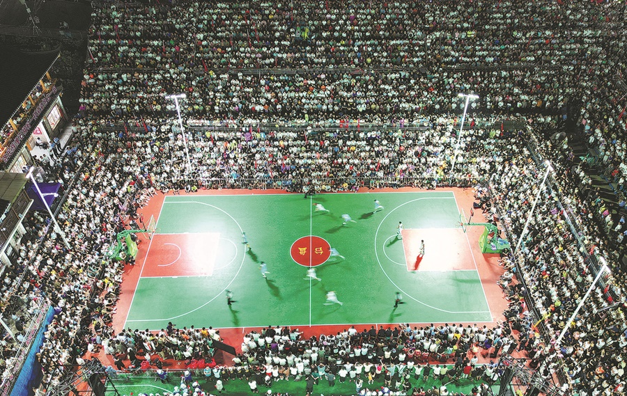 Los espectadores llenan un estadio para ver la final de la "Asociación de Baloncesto de Aldeas" que se celebra en Taipan de Guizhou, 30 de julio del 2023. (Foto: Zhu Xingxin/ China Daily)