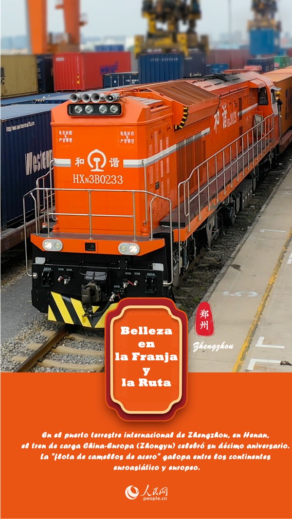 En el puerto terrestre internacional de Zhengzhou, en Henan, el tren de carga China-Europa (Zhongyu) celebró su décimo aniversario. La "flota de camellos de acero" galopa entre los continentes euroasiático y europeo.