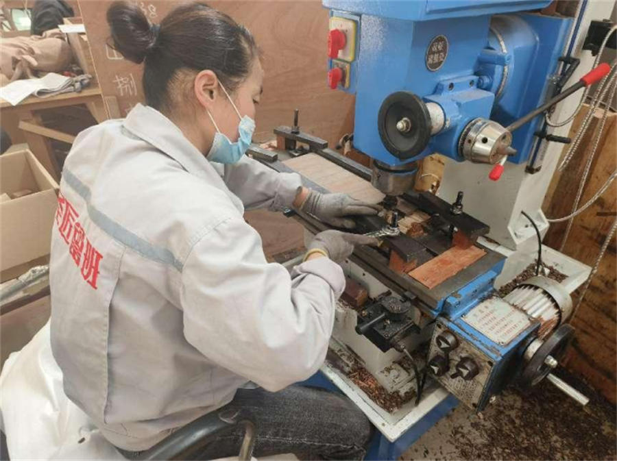 Una trabajadora fabrica cerraduras de Luban. (Foto proporcionada por Li Hao)