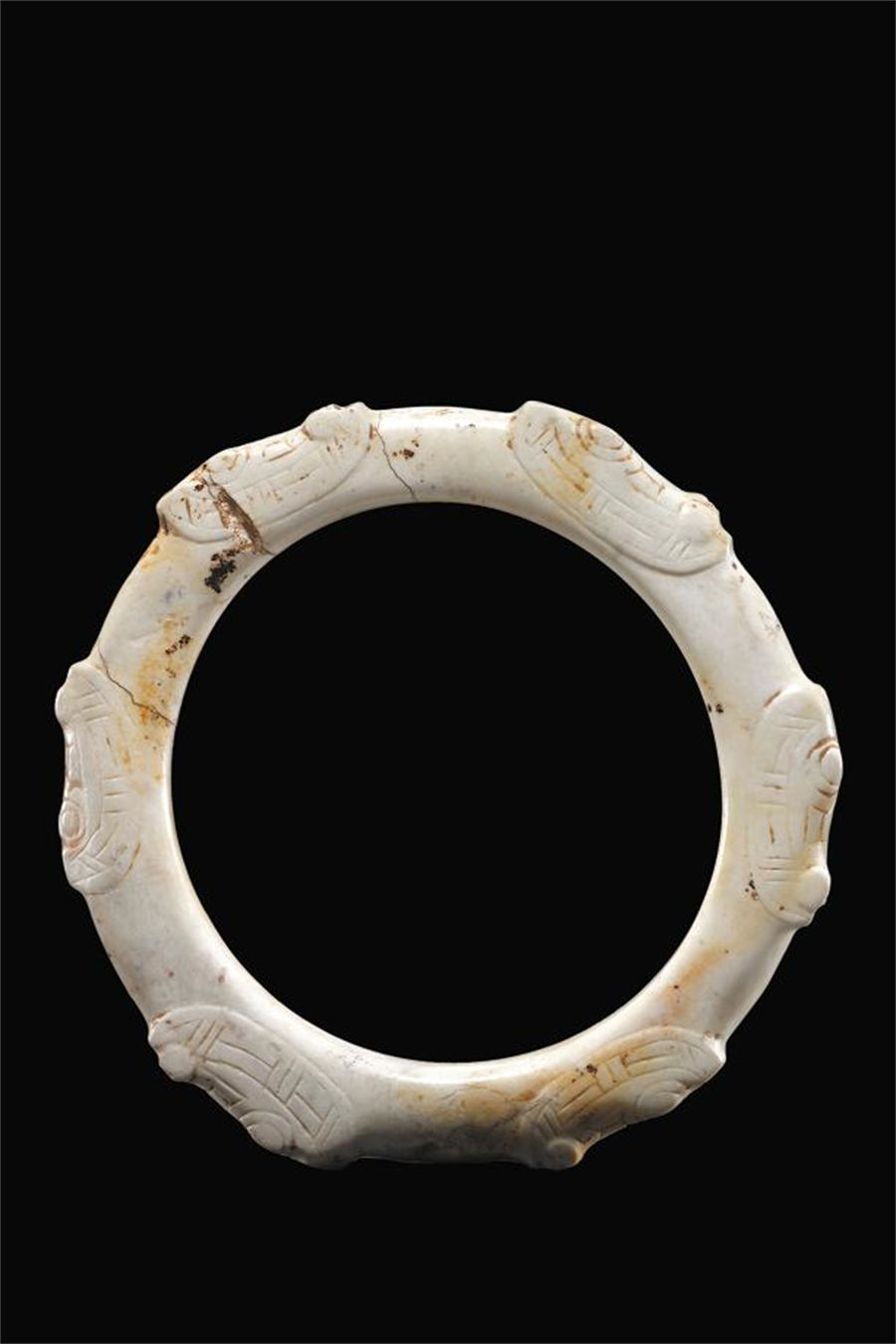 Un brazalete de jade excavado en el sitio de Beicun de las ruinas de Liangzhu en la provincia de Zhejiang. Proporcionado a China Daily