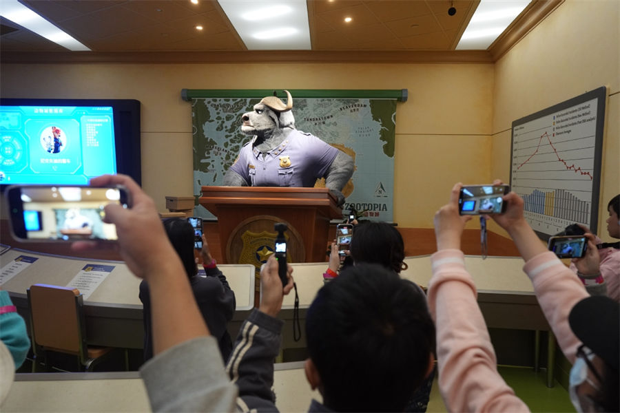 Esta foto tomada el miércoles muestra un modelo del Jefe Bogo en el parque Zootopia en el Shanghai Disney Resort, en el este de China. [Foto de Gao Erqiang/China Daily]