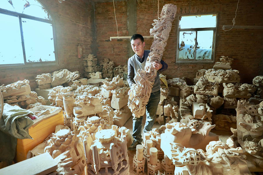 Fujian se prepara para el a?o del dragón con un meticuloso trabajo de talla en madera (6)