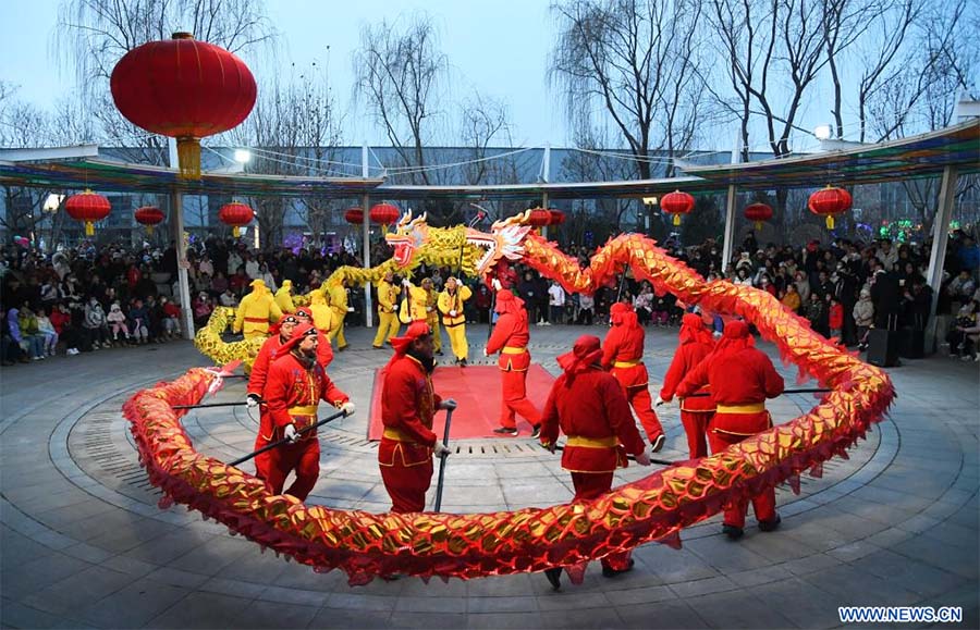 Personas realizan una presentación durante un evento para celebrar el Festival de las Linternas, en el que participan personas de la región de Beijing-Tianjin-Hebei, en el distrito Pinggu de Beijing, capital de China, el 24 de febrero de 2024. Personas de todo el país celebran el Festival de las Linternas, que este a?o cayó el 24 de febrero, en medio de un ambiente festivo y bullicioso. (Xinhua/Ren Chao)