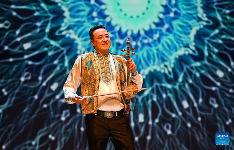 ?Imagen del 2 de junio de 2024 de un artista de la región autónoma uygur de Xinjiang de China realizando una presentación en una sala de conciertos, en Estambul, Turquía. Un grupo de artistas de la región autónoma uygur de Xinjiang de China realizó una presentación de música y danza étnica china en Estambul, la ciudad más grande de Turquía, el domingo. El evento, organizado por el Consulado General de China en Estambul, tuvo lugar en una prestigiosa sala de conciertos de la parte europea de la ciudad. (Xinhua/Liu Lei)