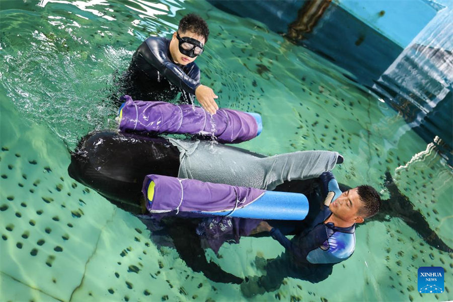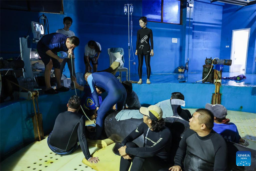 Ballena varada bajo cuidado meticuloso en Hainan de China