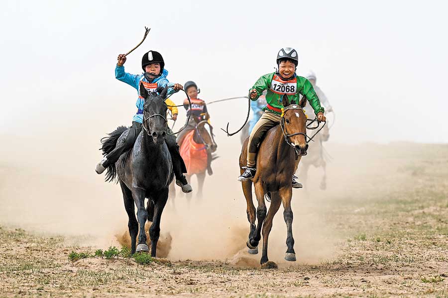 En la competición, el público puede experimentar la emoción mientras los jinetes expertos, a menudo ni?os peque?os, galopan a través de las estepas en sus robustos caballos mongoles a lo largo de distancias de hasta 30 kilómetros.