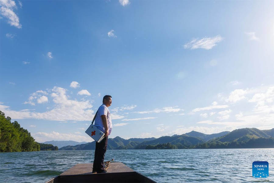 Imagen de archivo sin fechar de Yu Jiajun, un doctor del centro médico insular de la aldea de Qishan, en el distrito de Jinzhai, en la ciudad de Lu'an de la provincia de Anhui, en el este de China. Mientras China celebra su séptimo Día del Médico, la máxima autoridad sanitaria del país ha anunciado y homenajeado a diez miembros modelo del personal médico por su desempe?o en lo corrido del a?o. Los diez profesionales son personal ejemplar que ha hecho contribuciones a la innovación en ciencia y tecnología médica, el desarrollo de la medicina tradicional china y la mejora de la salud entre las mujeres y los ni?os, entre otras áreas. Fueron anunciados recientemente por la Comisión Nacional de Salud y el Departamento de Publicidad del Comité Central del Partido Comunista de China. También se rindió homenaje al personal de enfermería para adultos mayores de todo el país, como reconocimiento a su dedicación a salvaguardar la salud y velar por el bienestar de los pacientes de edad avanzada. Creado en 2018, el Día del Médico de China se celebra el 19 de agosto de cada a?o para honrar a los médicos del país y reconocer sus contribuciones. (Xinhua)