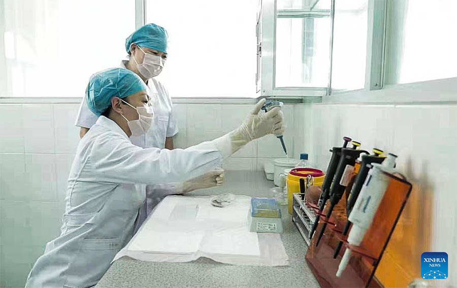 Imagen de archivo sin fechar de Chen Jing (frente), inspectora del laboratorio de microbiología del Centro de Prevención y Control de Enfermedades de Erenhot, trabajando en Erenhot, en la región autónoma de Mongolia Interior, en el norte de China. Mientras China celebra su séptimo Día del Médico, la máxima autoridad sanitaria del país ha anunciado y homenajeado a diez miembros modelo del personal médico por su desempe?o en lo corrido del a?o. Los diez profesionales son personal ejemplar que ha hecho contribuciones a la innovación en ciencia y tecnología médica, el desarrollo de la medicina tradicional china y la mejora de la salud entre las mujeres y los ni?os, entre otras áreas. Fueron anunciados recientemente por la Comisión Nacional de Salud y el Departamento de Publicidad del Comité Central del Partido Comunista de China. También se rindió homenaje al personal de enfermería para adultos mayores de todo el país, como reconocimiento a su dedicación a salvaguardar la salud y velar por el bienestar de los pacientes de edad avanzada. Creado en 2018, el Día del Médico de China se celebra el 19 de agosto de cada a?o para honrar a los médicos del país y reconocer sus contribuciones. (Xinhua)