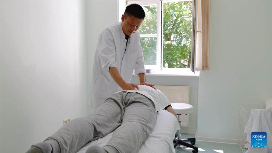?Imagen del 11 de julio de 2024 de un doctor especialista en medicina tradicional china del Hospital Koetzting de la Universidad de Medicina China de Beijing ayudando a un paciente con un masaje curativo, en el poblado de Bad Koetzting, en el sureste de Alemania. En el pintoresco poblado de Bad Koetzting, en el sureste de Alemania, se encuentra el Hospital Koetzting de la Universidad de Medicina China de Beijing, el primer hospital de medicina tradicional china del país. Fundado hace 33 a?os, sigue siendo el único centro de medicina tradicional china en Europa calificado para aceptar pagos de seguros y brindar atención hospitalaria. (Xinhua/Jia Jinming)