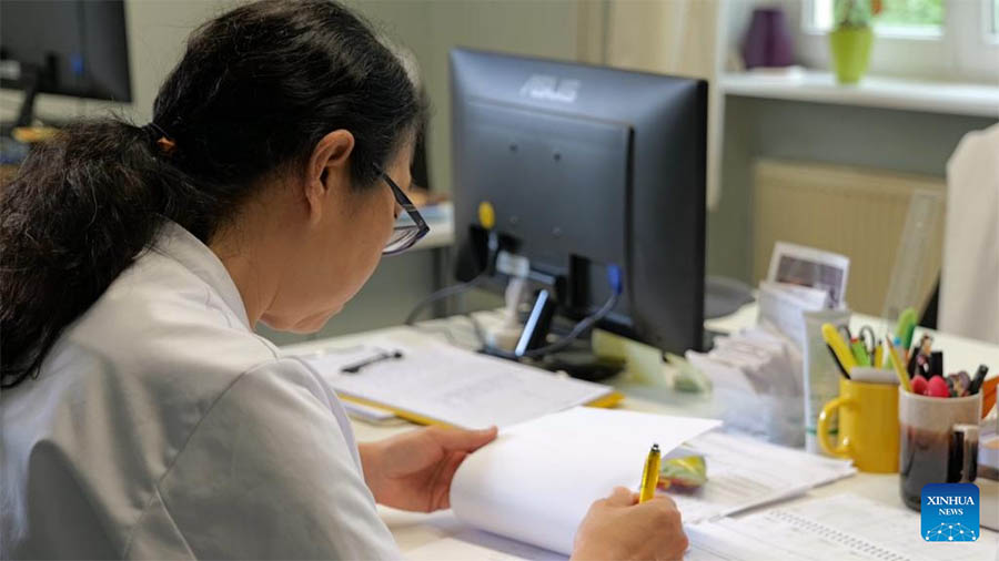 Imagen del 11 de julio de 2024 de una doctora especialista en medicina tradicional china del Hospital Koetzting de la Universidad de Medicina China de Beijing registrando la información de los pacientes, en el poblado de Bad Koetzting, en el sureste de Alemania. En el pintoresco poblado de Bad Koetzting, en el sureste de Alemania, se encuentra el Hospital Koetzting de la Universidad de Medicina China de Beijing, el primer hospital de medicina tradicional china del país. Fundado hace 33 a?os, sigue siendo el único centro de medicina tradicional china en Europa calificado para aceptar pagos de seguros y brindar atención hospitalaria. (Xinhua/Jia Jinming)