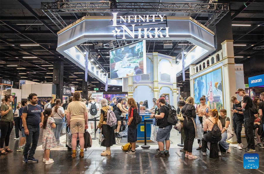 Imagen del 22 de agosto de 2024 de personas formándose para probar Infinity Nikki en el estand de Infold Games durante la gamescom 2024, en Colonia, Alemania. La actual gamescom, que se anuncia como el evento de videojuegos más grande del mundo, ofrece una oportunidad única para que los desarrolladores y los fanáticos de los videojuegos establezcan contactos y exploren las últimas tendencias en la industria de los videojuegos, y los organizadores están ansiosos por tener más socios chinos en el futuro. El evento abrió sus puertas a los visitantes el miércoles con un número récord de más de 1400 expositores de 64 países. (Xinhua/Zhang Fan)