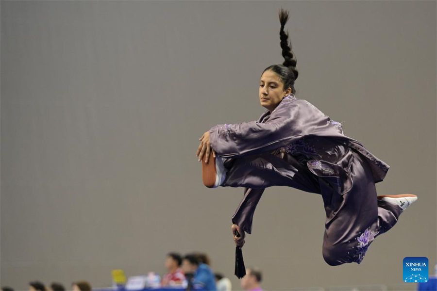 Rojy Alaa Elsayed Ibrahim, de Egipto, participa durante la competencia de Taijishan del tercer set del Grupo A & B femenino en el 4o Campeonato Mundial de Taijiquan celebrado en Singapur, el 26 de agosto de 2024. (Xinhua/Then Chih Wey)