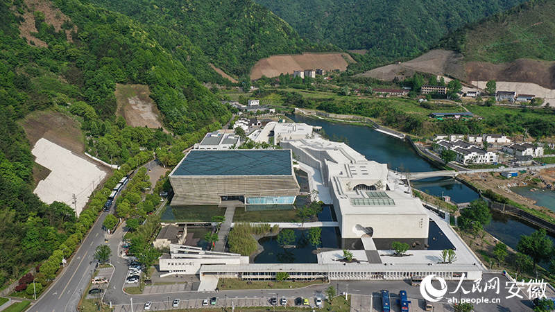 La foto muestra una vista aérea del parque cultural del papel Xuan ubicado en el condado Jingxian, provincia de Anhui, este de China. (Diario del Pueblo en Línea/Zhang Jun)