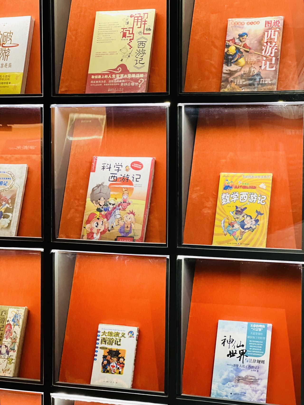 | Ejemplares de la obra Viaje al Oeste en exhibición en el Parque de Atracciones "Viaje al Oeste" en la ciudad de Huai'an, provincia de Jiangsu, el 19 de octubre de 2024. Foto por álvaro Lago Sánchez, Diario del Pueblo digital. |