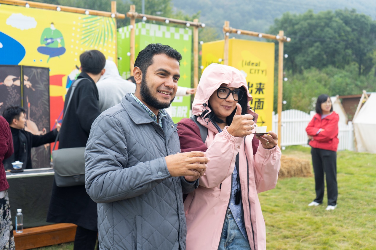 Periodistas extranjeros prueban té chino en el área escénica de la monta?a Yuntai de Haishang, en Lianyungang, provincia oriental china de Jiangsu, el 22 de octubre de 2024. (Diario del Pueblo digital/Chang Sha)
