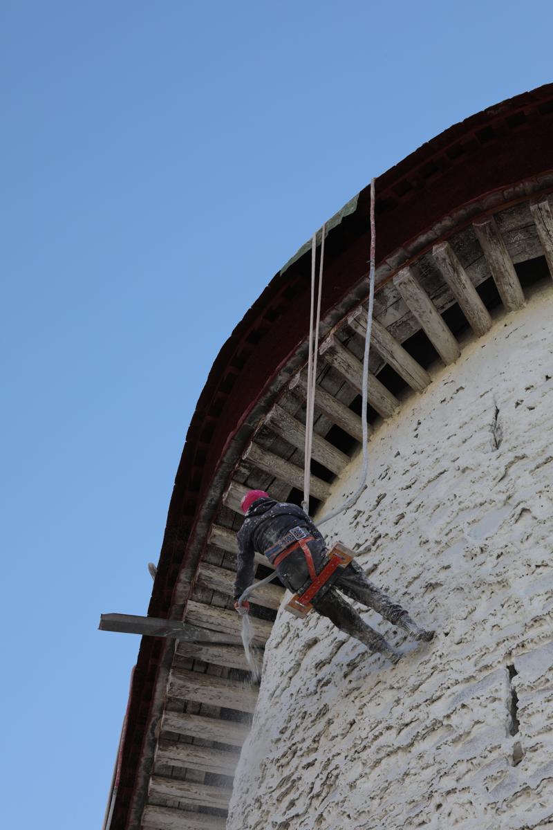 Los residentes de Lhasa se unen para pintar el Palacio de Potala como parte de la tradición anual (4)