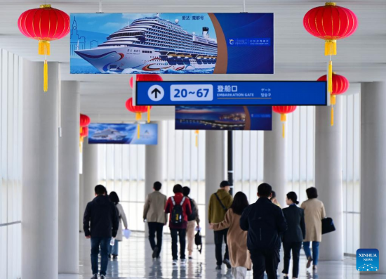 QINGDAO, 6 abril, 2025 (Xinhua) -- Pasajeros se preparan para abordar el Adora Magic City en la Terminal Internacional de Cruceros de Qingdao, en Qingdao, en la provincia de Shandong, en el este de China, el 6 de abril de 2025. Como el primer gran crucero construido en China, el Adora Magic City se embarcó en su viaje comercial inaugural el 1 de enero de 2024. Esta vez, el crucero hizo su debut en Qingdao, que es su primera aparición en una ciudad portuaria china que no sea su puerto base en Shanghai, y partirá hacia Jeju en República de Corea y Fukuoka en Japón. (Xinhua/Li Ziheng)