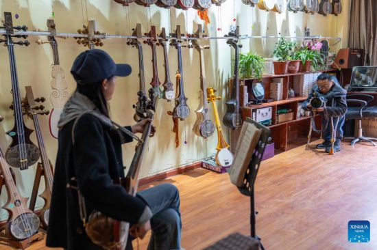 LHASA, 6 mayo, 2025 (Xinhua) -- Lhapa Dondrup toma fotografías del Zhanian, un instrumento de cuerda tradicional tibetano, en una empresa, en Lhasa, en la región autónoma de Xizang, en el suroeste de China, el 6 de mayo de 2025. Lhapa Dondrup, un hombre de 24 a?os nacido en Lhasa, padece osteogénesis imperfecta, comúnmente conocida como enfermedad de los huesos de cristal, desde la infancia. Ahora, como adulto, mide menos de un metro de altura y depende de muletas y una silla de ruedas eléctrica para desplazarse. A pesar de estos desafíos, Lhapa alberga el sue?o de convertirse en fotógrafo. (Xinhua/Tenzing Nima Qadhup)