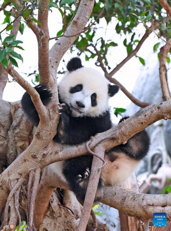 HONG KONG, 27 mayo, 2025 (Xinhua) -- La cachorra de panda gigante, Jia Jia, juega en el área de la Aventura del Panda Gigante del Ocean Park Hong Kong, en Hong Kong, en el sur de China, el 27 de mayo de 2025. Los primeros cachorros de panda gigante nacidos localmente fueron nombrados como Jia Jia y De De, anunció aquí el martes el Ocean Park Hong Kong. La pareja de cachorros de panda gigante nació en agosto pasado y sus padres son Ying Ying y Le Le, los pandas gigantes obsequiados por el Gobierno central a la Región Administrativa Especial de Hong Kong. (Xinhua/Chen Duo)