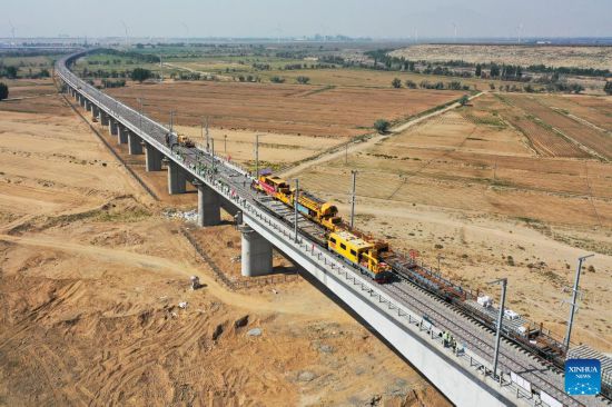 Finaliza fase de tendido de vías del tramo de Mongolia Interior del proyecto del ferrocarril de alta velocidad Baotou-Yinchuan