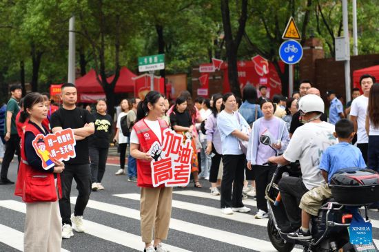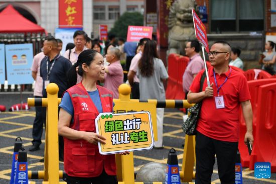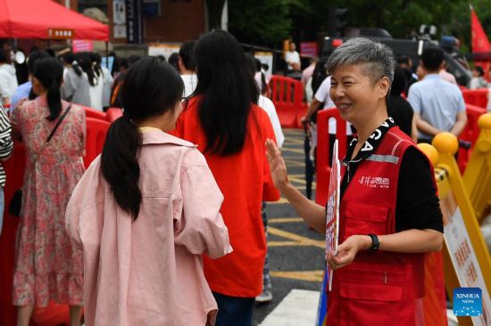 Voluntarios apoyan a estudiantes durante el examen nacional de ingreso a la universidad en Changsha