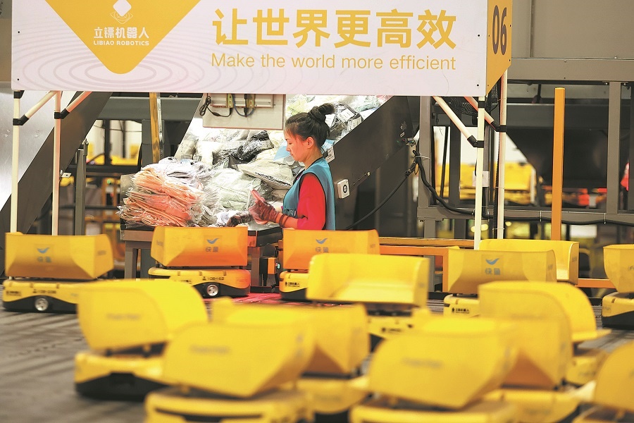 Robot de clasificación en un centro logístico de Huzhou, provincia de Zhejiang. (Foto: Ni Lifang/ China Daily)