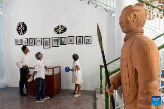 LA HABANA, 22 agosto, 2025 (Xinhua) -- Visitantes observan fotografías exhibidas en una exposición en homenaje a Fermín Hui, en La Habana, capital de Cuba, el 22 de agosto de 2025. Con una exposición de fotografías y documentos, el Barrio Chino de La Habana rindió homenaje a Fermín Hui, un descendiente de chinos que se hizo popular en Cuba por su participación constante en los carnavales de la capital de la isla. (Xinhua/Joaquín Hernández)